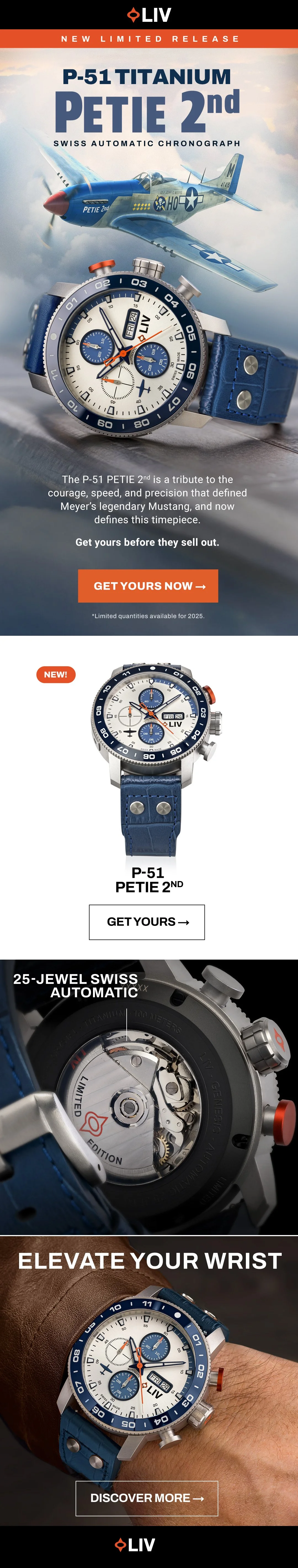Victory on Your Wrist 👊🏻 ᯓ ✈︎ 24 aerial wins. One daring Mustang. The P-51 PETIE 2nd is a tribute to the courage, speed, and precision that defined Meyer’s legendary Mustang, and now defines this timepiece. Only 100 pieces for 2025.